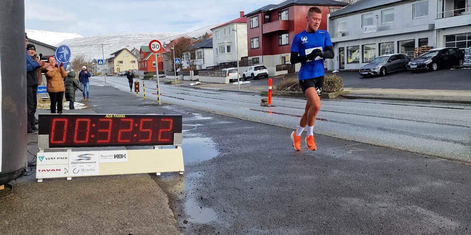 Allir komu á mál við góðum tíðum. Fyrstur av øllum var Rógvi Kárason og hann rann so skjótt sum 1:12:23. Rógvi hevur klárað Oyggjaleikakravið á ½ marathon, men hesa ferð rann hann eitt sindur skjótari og fekk betri tíð. Hann fekk krampa frá 14 km, so hann hevur stríðst teir seinastu kilometrarnar.