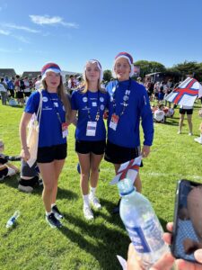 Eitt stendur rimmarfast í minninum hjá øllum hinum áskoðarum og íðkarum! Tað eru tær heklaðu húgvurnar, føroyingarnir gingu í. Føroyska fylgið var sera kreativt. Í hvørjari pausu, vóru heklinálir og stokkar frammi og tað vakti ans rundan um okkum. Og tá so genturnar vóru lidnar at kappast, settu tær seg á bonkin at hekla húgvur, so at tey øll høvdu hvør sína. Enntá til setanina gingu tær og heklaðu. Fleiri komu at spyrja eftir uppskrift, meðan onnur spurdu um bílegging. Eisini í býnum løgdu fólk merki til húgvurnar, heklaðar í litinum hjá okkara vakra flaggið. Skotar er gestablíðir og prátingarsamir og stóra samrøðuevni var oftast, at Føroyar vóru á odda í heiðursmerkjum og so kom prátið á húgvurnar. 🙂