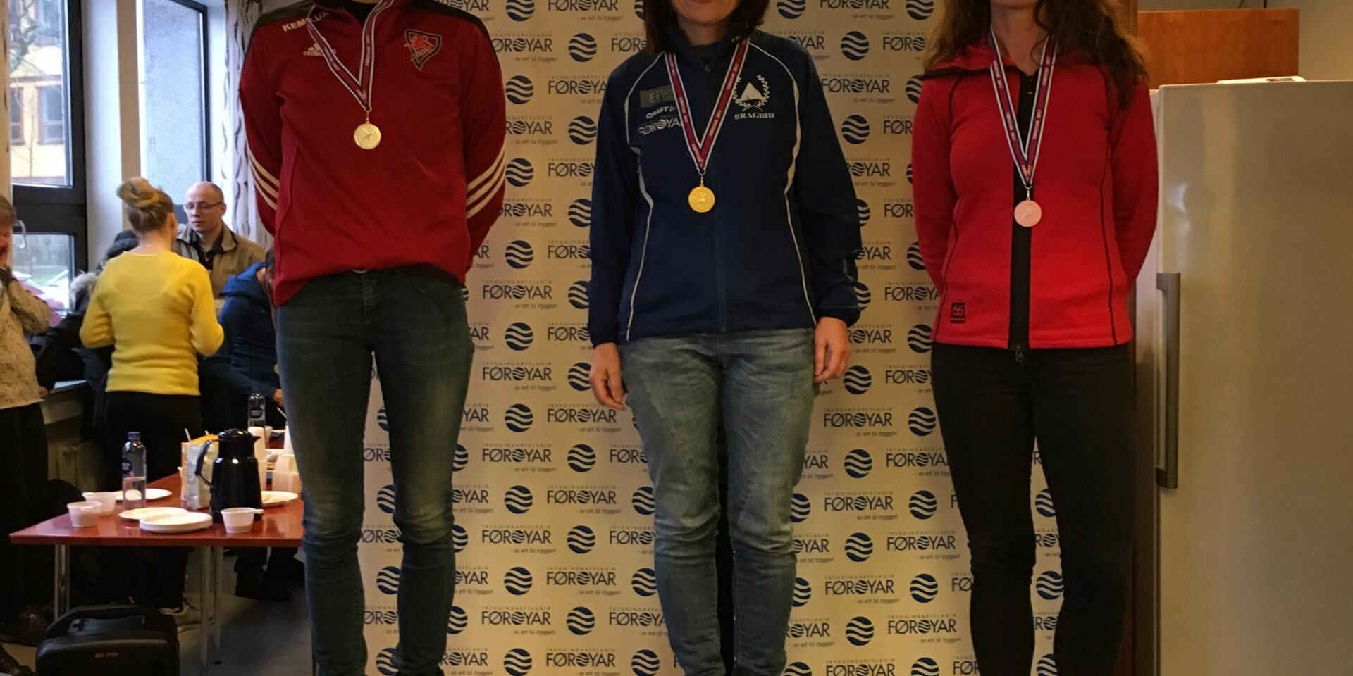 Heiðursmerkjahandanin fór fram í lærarastovuni, meðan vit nutu ein góðan drekkamunn við vaflum afturvið, sum Bragdarkvinnur høvdu bakað og aðrar serveraðu. Tað er altíð ein hugnalig løta, har prátið gongur so lystiliga.
